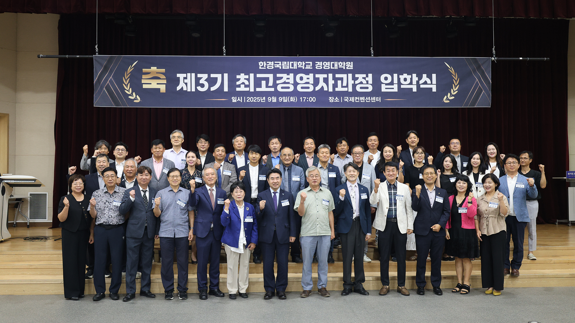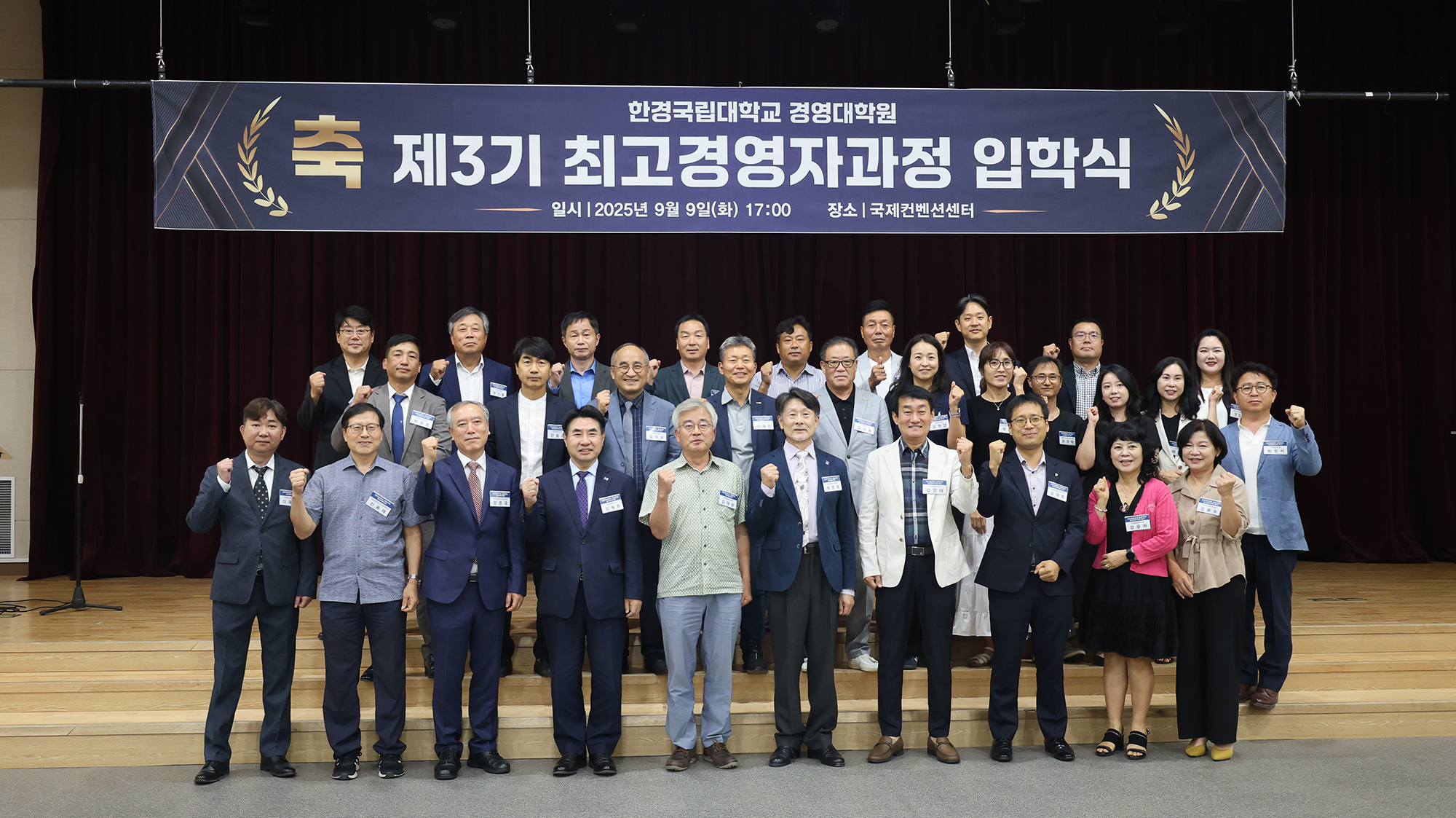 fnctId=bbs,fnctNo=707 페이지 공유 글번호 88517 한경국립대학교 경영대학원 제3기 최고경영자과정 입학식 개최 작성일 2025.09.09 수정일 2025.09.09 작성자 노동호 조회수 107 9월 9일 저녁 제3기 최고경영자과정 입학식을 개최하였습니다. 총 25명의 지역리더들이 입학하였으며, 12월까지 총 14주간 교육이 진행됩니다. 많은 관심 부탁드립니다. 첨부파일 008A5098.JPG 008A5111.JPG 008A5083.JPG 008A5119.JPG 008A5089.JPG