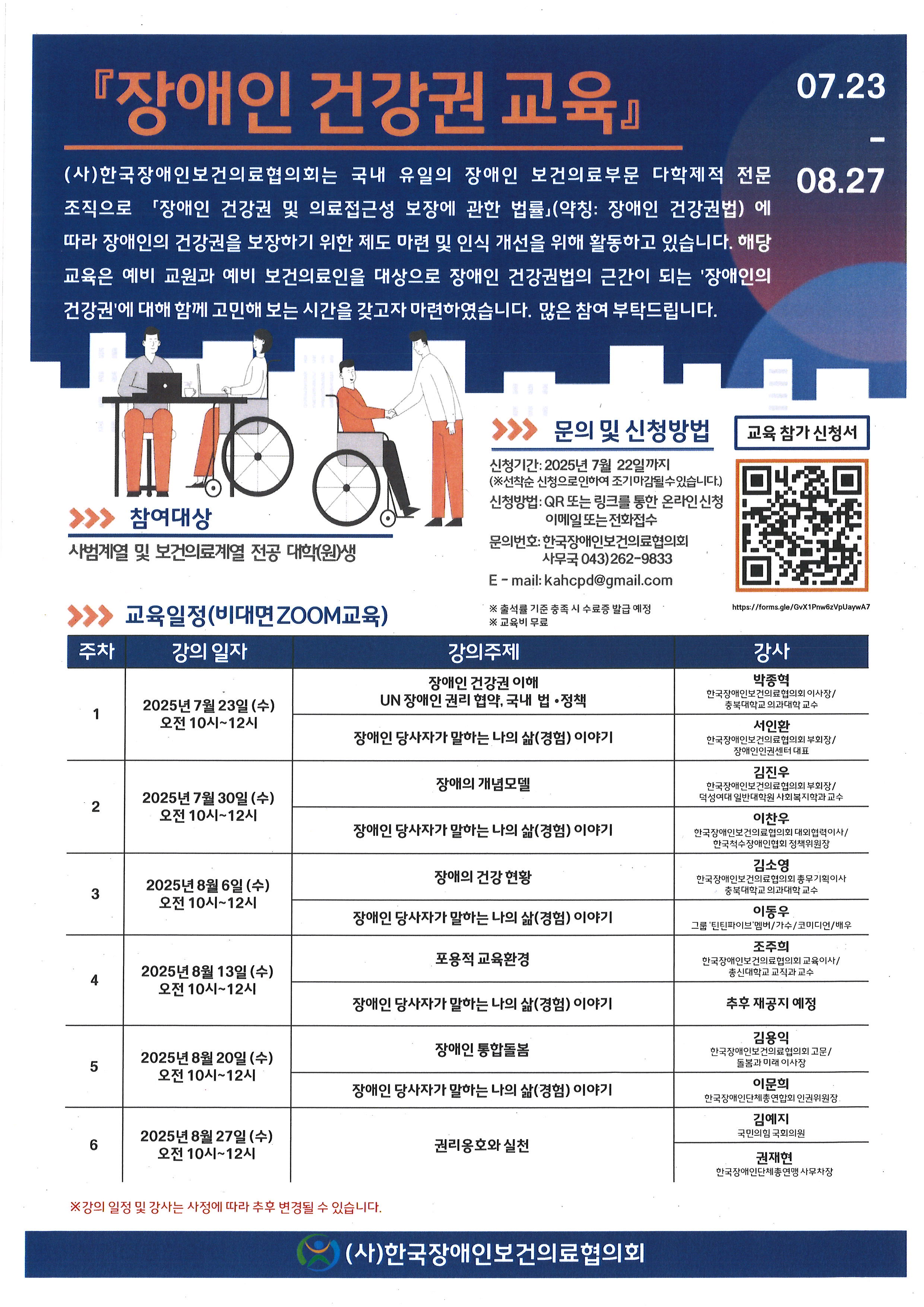 (사)한국장애인보건의료협의회 '장애인 건강권 교육' 안내